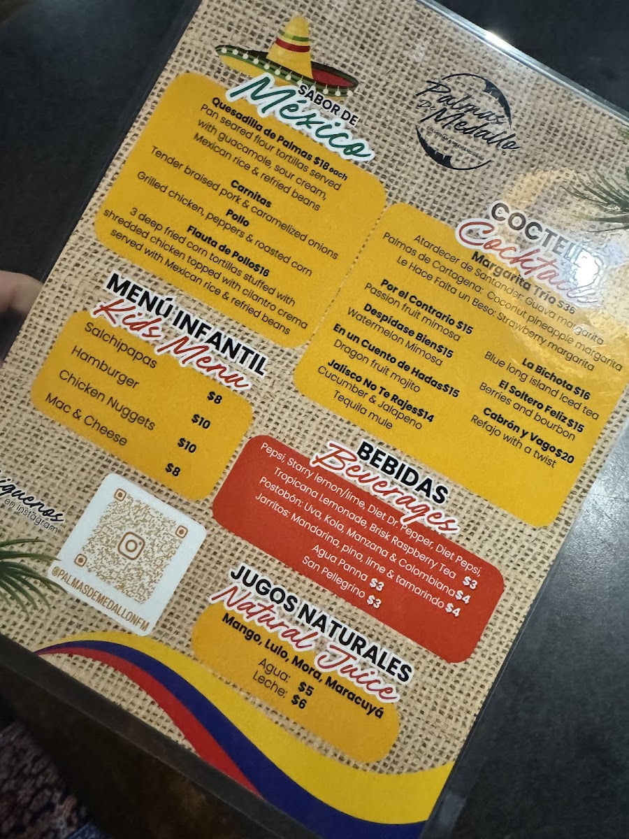 With its colorful and vibrant offerings, Palmas De Medallo brings an exciting mix of traditional and contemporary flavors to the table, ensuring that there is something for everyone to enjoy. Whether you're sipping on one of their refreshing cocktails or savoring a flavorful dish, the experience at Palmas De Medallo is bound to be a memorable one.